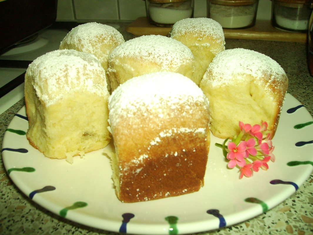 Buchteln - tai tradicinės austriškos saldžios bandelės, kurios puikiai tinka desertui. Jos yra minkštos, su skaniu džemo įdaru, o viršuje pabarstytos cukraus pudra.