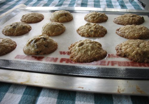 Naudokite silikoninį kilimėlį, kad sausainiai neliptų prie skardos.