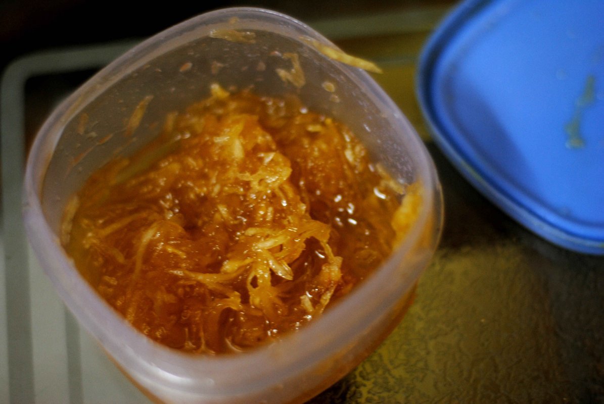 Išdėkite mišinį į negilią, plačią talpą ir uždenkite plonu audiniu. Laikykite saulėje 5 dienas, kol sirupas pasieks viengubo siūlo konsistenciją, maišydami tris kartus per dieną.