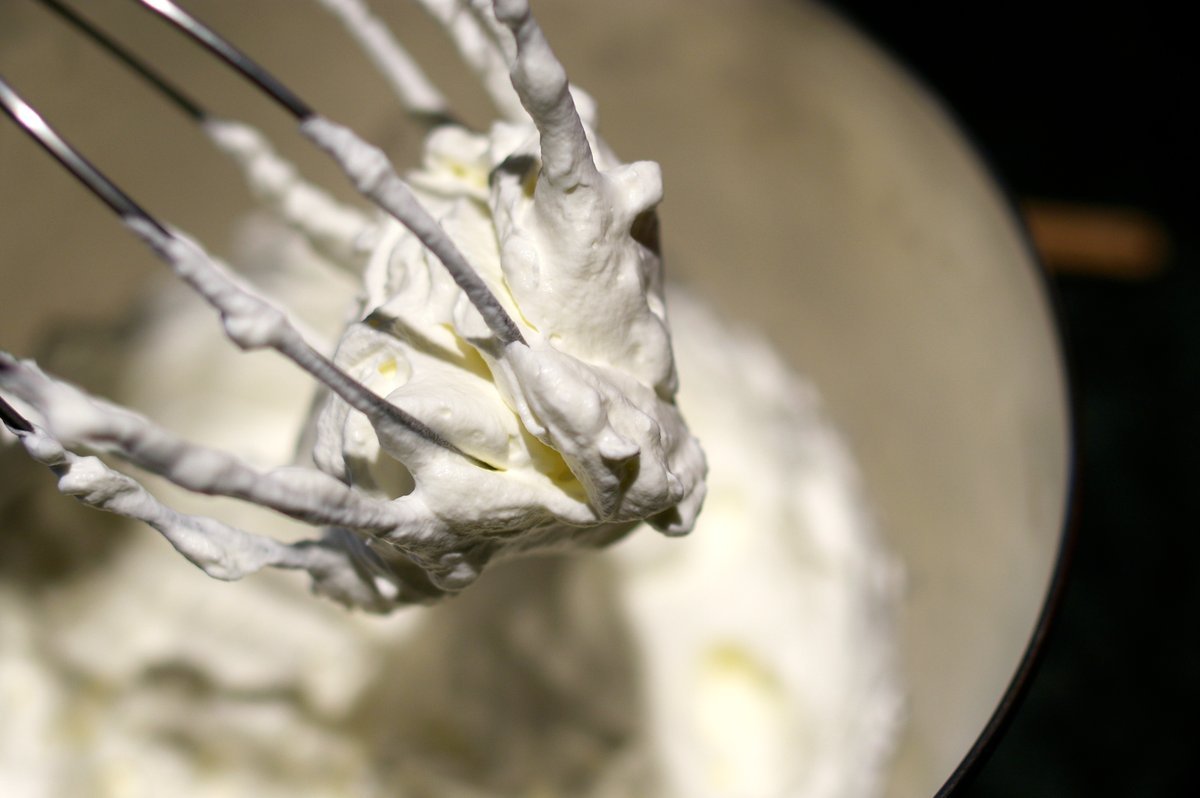 Naudokite grietinėlę, kurios riebalų kiekis bent 30%, kad grietinėlė išliktų stabilios formos.