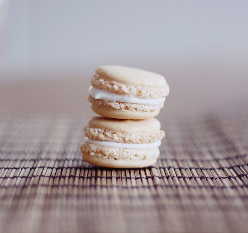 Atvėsinkite ir sudėkite pasirinktinį įdarą tarp dviejų makaronsų puselių.
