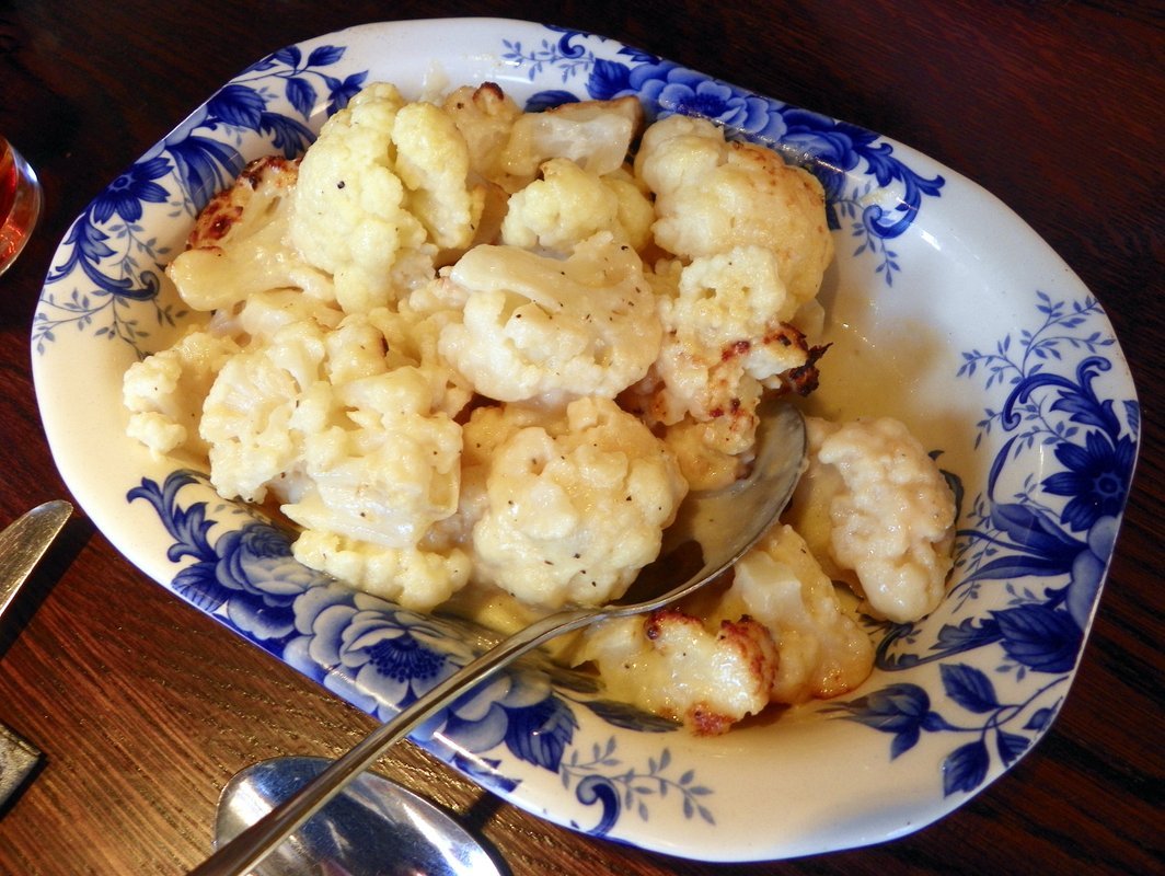 Išvirtus žiedinius kopūstus sudėkite į indą. Sumaišykite baltąjį padažą su 2/3 parmezano ir užpilkite ant kopūstų. Pabarstykite džiūvėsiais ir likusiu parmezanu.